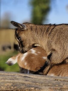 C’est par passion pour ces petits caprins curieux et attachants que j’ai développé mon petit élevage de chèvres naines et extra naines, appelées chèvres miniatures.