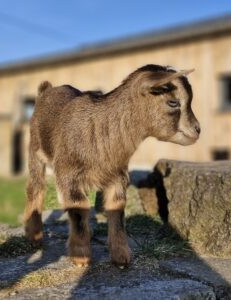 Nos petits caprins peuvent quitter l’élevage à partir de leurs 3 mois pour rejoindre leur nouvelle famille (en duo si c’est pour une famille qui n’a pas déjà des chèvres). Ils partent en règle sanitaire avec leur fiche de suivi et conseils pour bien démarrer leur nouvel vie.